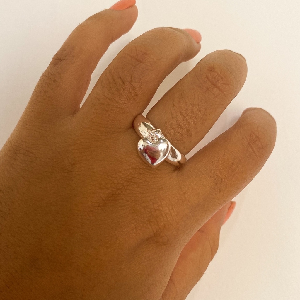ref 153 anel coração pendulo T. 19 - semijoia prata