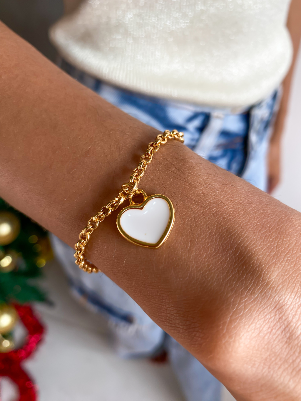 Descubra a delicadeza da Pulseira Plaquinha Coração com acabamento em verniz italiano e banho de ouro, feita para encantar e destacar sua personalidade. Seu design sutil e elegante é perfeito para quem valoriza detalhes que fazem toda a diferença. Uma peça única que traz brilho duradouro e um toque especial de amor para o seu visual. Realce seu estilo com essa joia que é puro charme e significado!