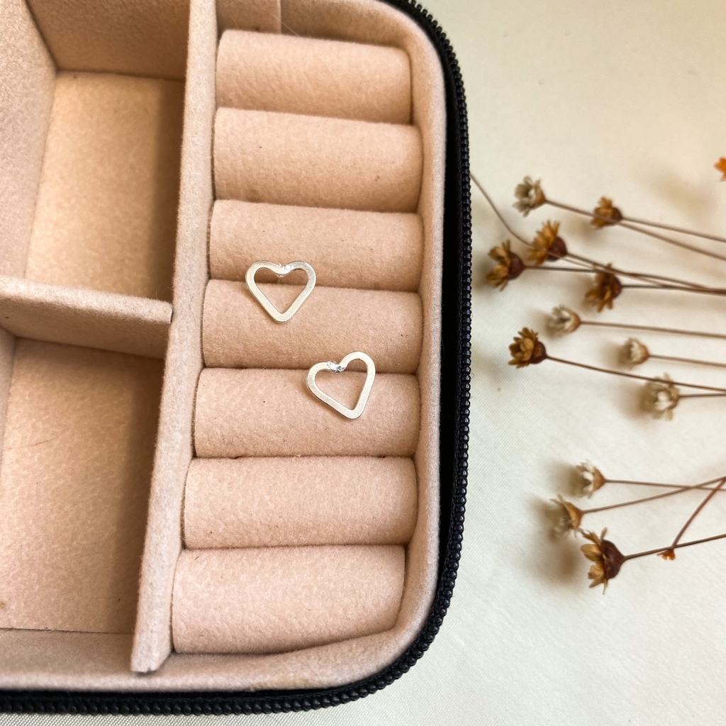 ref 243 brinco coração vazado - semijoia ouro 18k ou prata