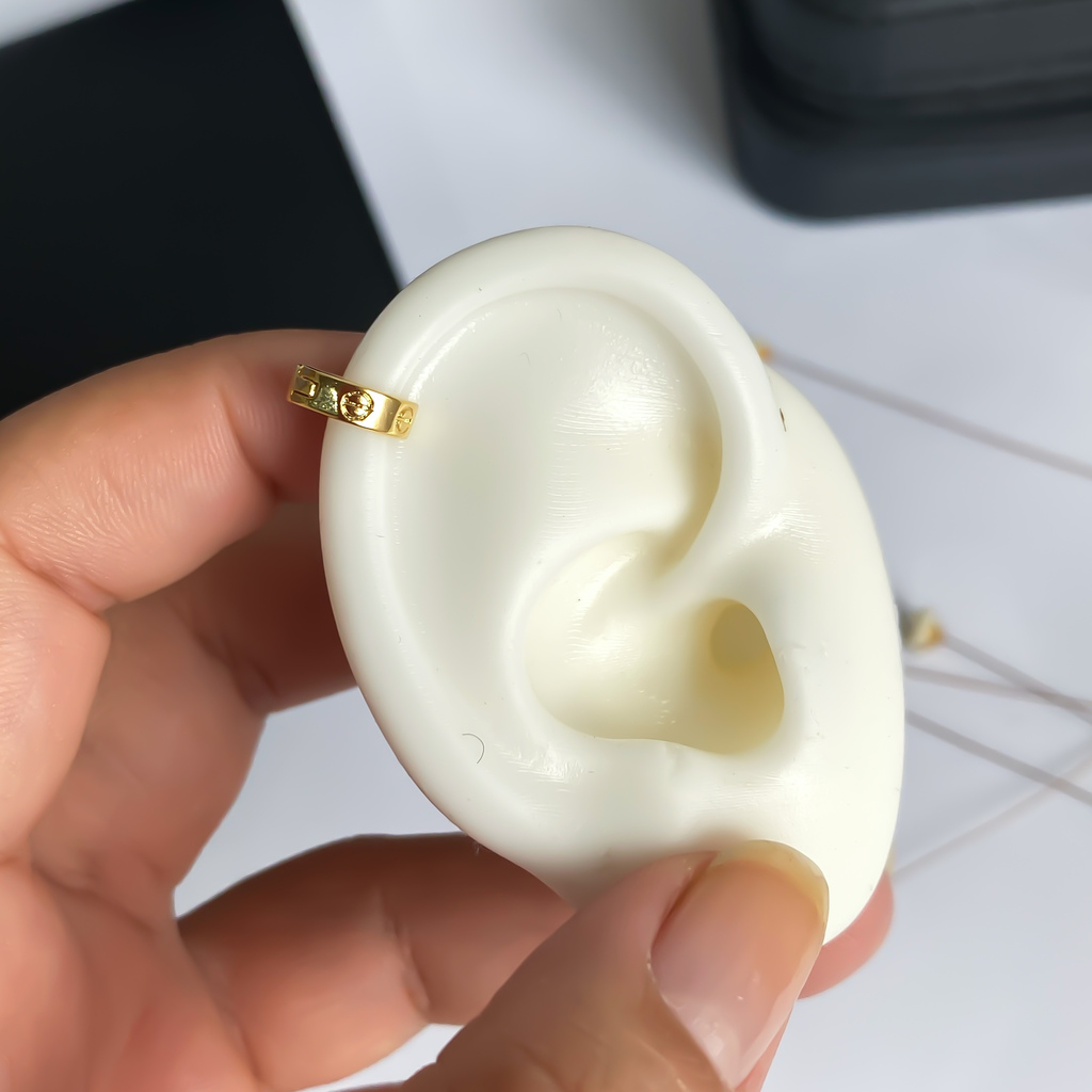 Esse piercing incrível traz um toque de modernidade e sofisticação ao seu visual. Com design delicado e elegante, ele é uma semijoia com banho de ouro 18k, garantindo durabilidade e brilho.